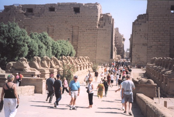 Il tempio di Karnak era ancora più maestoso, e vasto. Le sue colonne immense e artistiche (nella sala delle colonne ce ne sono più di cento), i due obelischi e un altro steso a terra, dimezzato (un altro ancora si trova a Place de la Concorde a Parigi) mi fecero rabbrividire per questa opera dell'ingegno umano.